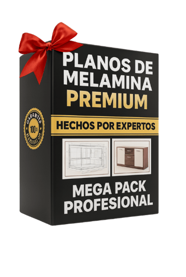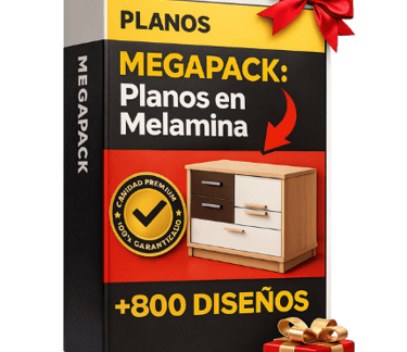 Con este recurso no tenés que diseñar desde cero: descargás más de 800 planos profesionales en melamina listos para imprimir, llevar a la maderera y empezar a fabricar.